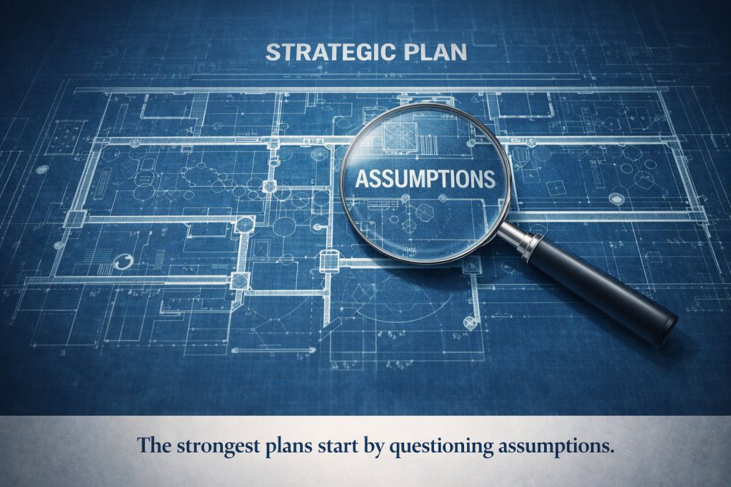 The goal isn’t to eliminate assumptions. Every strategic project requires them. The goal is to know which ones you’re making, stress-test the ones that carry the most organizational weight, and build deliberate contingencies around the ones you simply cannot afford to get wrong.